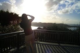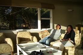 At this point, it was time to check in to the Giverny Inn, a B&B that I had found online, which advertised 270 degree panoramic views and a Mediterranean style. As our host Gabrielle led us up the steps to the deck of our villa, we were absolutely blown away by what we saw. They weren't kidding! Sweeping views of the ocean and the ever shifting clouds illuminated by the late afternoon sun seemed to make time stand still. We sat down on the couch and tried to figure out how we could stay here forever. Jack, who is so attached to the beautiful San Francisco Bay Area, actually seemed to be contemplating a move! Sigh... do they need music teachers in Waiheke?
