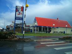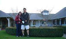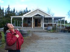 As we were driving through the scenic passage to Martinborough, there were some pretty enormous winds, and a giant storm loomed We started getting the munchies about an hour after the Craggy Range tasting, but we had no time to stop for food, so as much as I hate to admit it, we feasted on some delectable treats from good 'ol KFC. And you know what? It was pretty darn tasty. We finally arrived in Martinborough at 3 p.m., and I was excited! La Verne and I tasted our first New Zealand Pinot Noir last year on a trip to Napa during the Memorial Day weekend... We were at the Martini House, and we asked our server for an interesting Pinot Noir. He suggested the 2002 Ata Rangi, from the Martinborough region. It was amazing stuff -- so much so that the first place I knew I wanted to visit in New Zealand was Ata Rangi! Here are a couple of photos we took of their property: