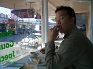 I drove half of the way down to the Christhurch area, and as we entered the Canterbury region, we started passing some wineries. This prompted Jack to grab our wine map to see what this wine growing region was all about. We decided to stop off at this place called the French Farm winery for lunch and a tasting. On the map, it didn't seem too far from Christchurch, being on a peninsula fringed by the ocean. But how to get there? Without any detailed directions through the area, we soon found ourselves going through slow local roads and a long tunnel which dumped us out in a small, picturesque town called Lyttleton. We stopped off at the tourist info office and learned that we were way off the trail, and the drive out to the peninsula would actually take about 2 hours. Since the detour had already taken us an hour, we decided just to head back into Christchurch, which, it turned out, on the highway, was only a 20 minute drive. By this point, we were both starving and getting crabby. Jack bought me a roll of mentos at a gas station and I ate them all in one sitting.