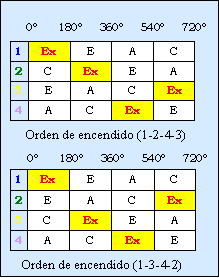 Según esto, para cada uno de los cilindros se obtiene un orden de encendido que puede ser: 1-3-4-2, o también: 1-2-4-3.