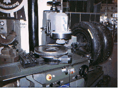 Máquina rectificadora actuando sobre un bloque motor de 4 cilindros una vez convenientemente nivelado.
