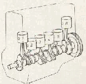 Sin embargo, en un motor de cuatro cilindros de cuatro tiempos, en cada ciclo de funcionamiento se producen cuatro impulsos motores, uno por cada media vuelta del cigüeñal, lo que hace que el giro sea más uniforme y equilibrado. No se necesita, por tanto, un volante de inercia tan pesado para compensar los movimientos improductivos.