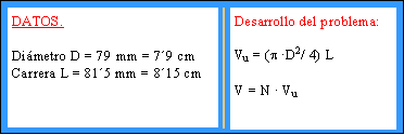 En el problema anterior, hallar la relación de compresión del motor sabiendo que la cámara de explosión tiene un volumen de 44´35 centímetros cúbicos.
