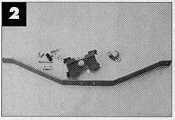 on a bracket bolted to the bottom of the transmission. Polyurethane end pieces cup the rear axle