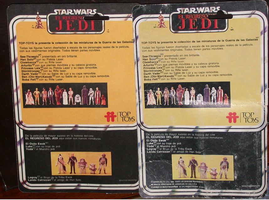 This page is dedicated to the Top Toys run of Star Wars figures created in Argentina. The figures were molded from the Kenner run of figures rather than having their own original molds. The quality is rather poor and at times shotty. Just about every aspect including weapons is different when compared to the Kenner and Palitoy runs.