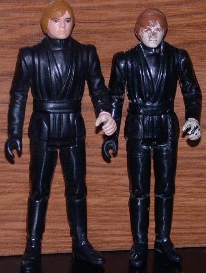 I got a good price for this Luke. He is pictued on the right in horrible condition. It seems to be extraordinarily difficult to get a Top Toys Luke Jedi at all. The height difference here is painfully obvious when compared to the Kenner version.