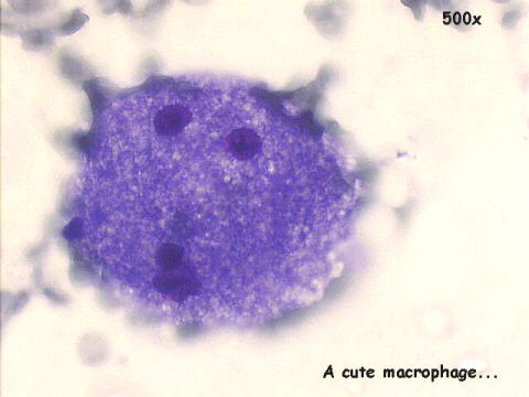 I saw this peculiar poodle-looking macrophage in a Broncho-alveolar lavage (BAL) specimen, no diagnostic significance attached...