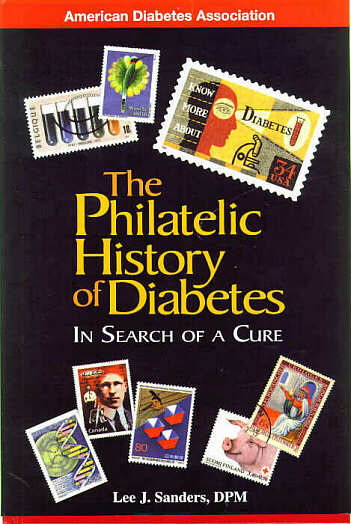 " With more than 40 internationally issued postage stamps beautifully displayed and identified by country and date of issue, this book groups commemorative stamps into five evolutionary phases that illustrate how diabetes has been viewed throughout history..." from the back cover of The Philatelic History of Diabetes. In Search of a Cure , by Lee J. Sanders, DPM, edited by the American Diabetes Association, 2001 My copy of this book was given to me by Prof. Jorge Gross, Porto Alegre, RS Brazil. I gratefully acknowledge this wonderful gift. |