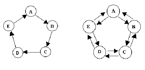 Se pretende construir una red de conmutación de paquetes con cinco nodos. Se barajan dos posibles topologías:
