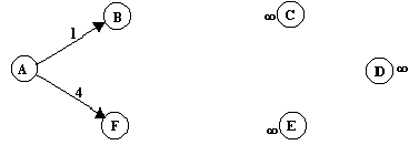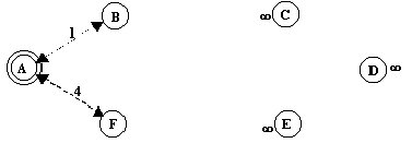 1.- Calculamos, usando el algoritmo de Dijkstra, la ruta de coste mínimo del nodo A al resto de los