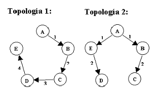 calcule para ambas topologías las rutas de