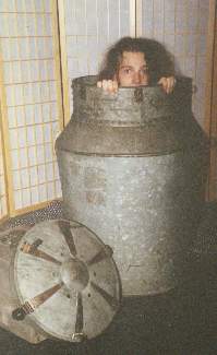 Nathan Sherwood in Houdini's milk can in