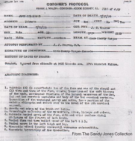 Autopsy report on John Dillinger