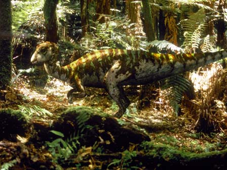 Leaellynasaura, A small, elegant biped that lived in clans on the forest floor, distinguished by the big eyes and enlarged optic lobes that enabled it to see in the dark. This creature was well suited to being a permanent resident of the polar forests.