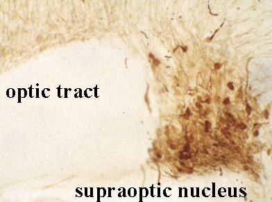 hypothalamus. The hormone producing cells are located in the supraoptic and