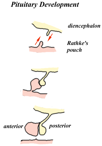 diencephalon. In the middle of the fourth week, a diverticulum, Rathke's