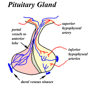short portal vessels to supply the pars distalis. The superior hypophyseal
