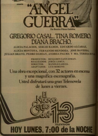 | Producci�n: Canal 13; Benjam�n Caann. Realizador: Jorge Lemus. Director: Manolo Garc�a. Argumento: basado en la obra de Benito P�rez Gald�s; adaptaci�n: Luis Moreno. Inici� sus trasmisiones por canal 13, el 9 de julio de 1979. 20 capitulos. |