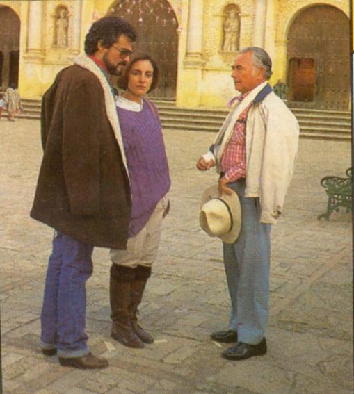 | Gonzalo Vega, Diana Bracho y Jose Angel Espinoza Ferrusquilla en San Cristobal de las Casas, Chiapas, durante la grabacion de Cuna de lobos | ||||||||||||||||||||||||||||||||||||||