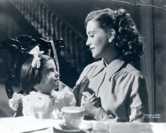 | Comentario (Jes�s Ibarra): Inmaculada es la primer pel�cula de una serie de melodramas lacrim�genos que Julio Bracho film� en los a�os cincuentas. Aunque no se compara a sus extraordinarias realizaciones anteriores, Bracho logra llegar al sentimiento del p�blico conduciendo con maestr�a las actuaciones de Rosario Granados y Carlos L�pez Moctezuma, en esta pel�cula cuyo tema es la vejaci�n de la mujer por parte del hombre, aun en los estratos sociales m�s bajos, representados �stos por la sirvienta Severina (Delia Maga�a) y su novio Nacho (Armando Arriola), y su sacrificio por los valores familiares. Rosario Granados luce hermosa; alta y esbelta, porta con elegancia hermosos trajes de la �poca de los cuarentas, tanto cuando es una dama rica, como cuando su marido afronta la ruina. Como es su costumbre de hacer con sus actrices, Bracho toma exquisitos close-ups de Rosario, retratando su dulce rostro, con sus bellos ojos anegados en l�grimas. En la escena en que Rosario escucha el concierto de viol�n de su amado Luis �ngel (Eduardo Noriega), una toma de close-up capta la expresi�n en el rostro de la actriz en la que es palpable el sentimiento que le causa la m�sica que escucha. Carlos L�pez Moctezuma est� genial, primero como el hombre rico, poderos y mujeriego y luego como un ser en decadencia, un despojo humano, imposibilitado para hablar y atado a una silla de ruedas, que se da cuenta de el sacrificio de su mujer. Es conmovedora la escena cuando �l, paral�tico y mudo, contempla a su peque�a hija (una peque�a y dulce Diana Bracho) empujar con dificultad la silla de ruedas de su padre, y pararse de puntas ante el lavabo para abrir la llave y servirle agua. La peque�a Diana demostraba ya una gran soltura ante la c�mara y logra enternecer al espectador. Es realmente un l�stima que Inmaculada haya sido la �nica pel�cula en que pudimos disfrutar de su presencia infantil, ya que Diana no volvi� a trabajar en cine sino hasta 1973, ya siendo una mujer. La hermana de Julio Bracho, Andrea Palma hab�a hecho en Estados Unidos una versi�n anterior de esta novela de Catalina D�Erzell, pel�cula que no fue del agrado de la se�ora Palma. | ||||||||||||||||||||||||||