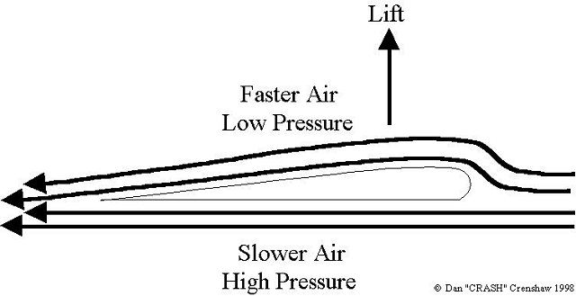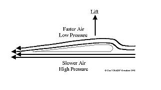 of the top of the wing being greater than the curvature of the