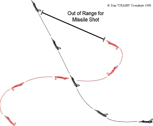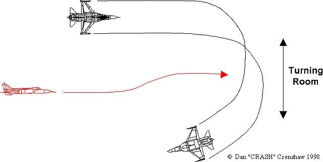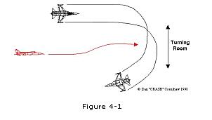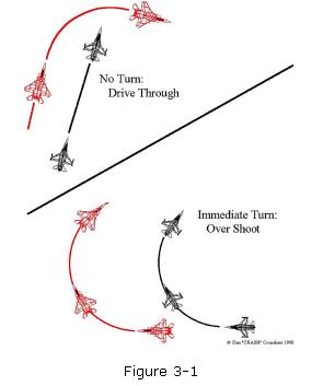 to over shoot and cross into his weapons envelope before turning