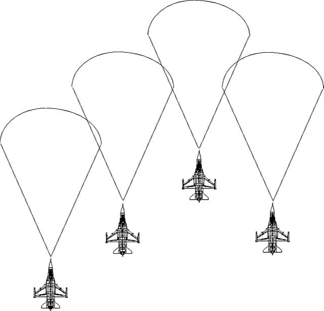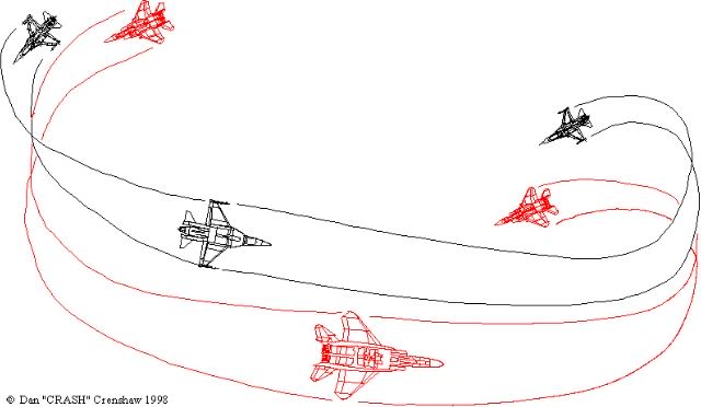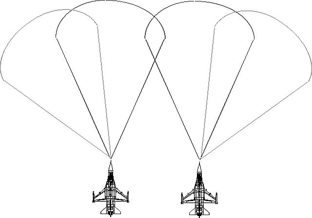front. In Figure 8 - 3, the F-15 has over shot the F-16. The