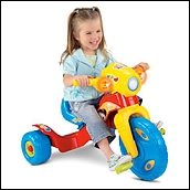 1: Tot Rod 2: Jewel's Lullaby Album 3: Mickey Mouse Helicopter 4: Baby�s First Bear 5: Toddler Trike 6: Baby Alexa Doll 7: Snuggle-Kins Panda 8: Elmo's Birthday Play Set 9: Dora the Explorer 10: Roll-Along Musical Pony Pictured right: The top selling Tot Rod |