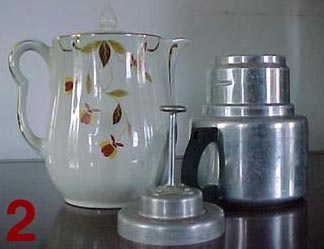 All-China Coffee Pot11" tallMade due to war restrictions on metal 4 pieces: coffee pot, lid, strainer, ground holder Approximate Value: $250.00 - $350.00 |