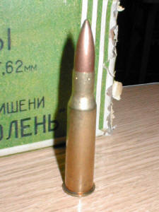 Here is a 7.62 x 54 R (rimmed) bullet like the kind the above Russian SVD uses. The diametric difference between a 6.5 mm and a 7.62 mm bullet (just barely over 1 mm), is something no one would notice on the victim's wounds. The SVD barrel rifling twists quickly (in a 4 groove right spin within its 24+ inch barrel), so the gun shoots flat and fast with great accuracy. I use this round with my 1905 Russian made Moisin-Nagant (Manufactured in Tula, 20 miles due south of Moscow) and can hit a target easily with no scope at 800 yards, on every shot. (The Viet Cong also used the Moisin-Nagant for sniping. See Marine Sniper, the story of Sgt. Carlos N. Hatchcock III. ) Any good shooter and re-loader can cast their own bullets out of soft lead mixed with sand, providing a frangible bullet. Out of the box, this round travels at 2,850 feet per second and is deadly accurate up to 3,280 feet.