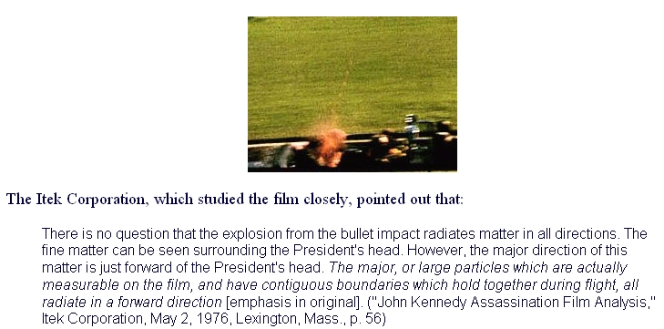 LOOK AT THIS! The Itek Corporation determined that the bullet that ruptured JFK's right skull was traveling forward and to his right. That means that it came from his left rear, in the area of the County Records Building.