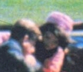 Notice in this isolated close up from the Zapruder film that was taken just after JFK is hit in the back of the neck, Mrs. Kennedy is very close to him, lovingly tending to her fallen sweetheart. Momentarily she said, "Oh, my God, they have shot my husband . . . I have his brains in my hand." She said this a moment after these pictures were taken, when she had her right hand around JFK's head, in her lap. This description puts JFK's death wound where we see it on the autopsy pictures, on the right upper part of his temple area.