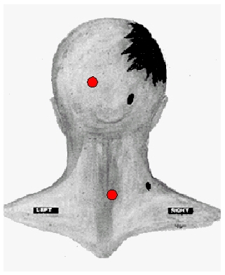 Notice that in this autopsy photo JFK's upper back wound is roughly in the center. But in the diagram drawn by Rydberg for The Warren Commission this wound is shown much farther to the right, to substantiate the idea that the shooter was on the President's right rear, and that the shooter was Oswald. Also, the bullet entry wound on the skull is now shown, not on the left of center, but way over on the right. Red dots show the real locations of the wounds! Obviously the Commission adjusted the facts to suit their mission stated on the first page of their report, namely to "show that Lee Harvey Oswald killed JFK and that he acted alone..." Why didn't they say, "We are going to try to determine what happened here..."?