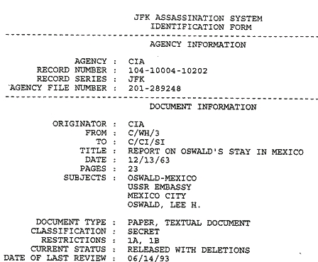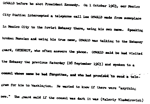 Also, "Saul" said that after the shooting, he saw Oswald leave the building from this very doorway and traverse to Saul's right, toward the Dal-Tex Building. He knew Oswald because he had studied him from close proximity in Mexico City prior to the assassination (Oswald was there, as has been verified by CIA document record # 104-10004-10202, agency file # 201-289248 seen below.). There is also a picture that federal agents took of "Saul", taken outside the Russian Embassy in Mexico City in October of 1963 and carefully cropped to hide that fact (see at bottom). It found its way into the Warren Commission report.