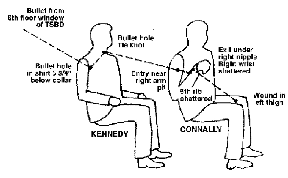 But The Warren Commission's "Miracle Bullet" theory has the first shot hitting the president in the back of the shoulder, to the far right, then exiting his trachea (in a strong right to left and upward trajectory), then going downward upon exit again and to the right to penetrate the car seat of Governor Connelly, then entering Connelly's rib cage and right wrist, then exiting and going to the left and downward, then entering his left knee, etc., etc. then finally being found virtually unscathed on JFK's stretcher at Parkview Hospital. PREPOSTEROUS!