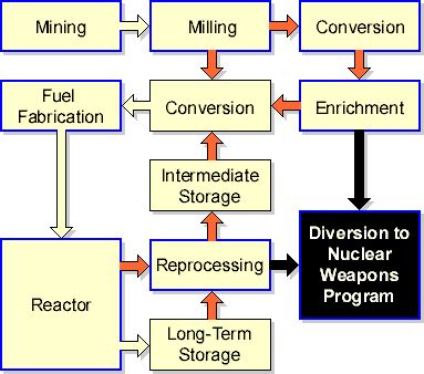 Diagram: Schematic diagram of diversion of fissile material to weapons