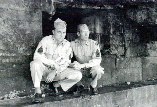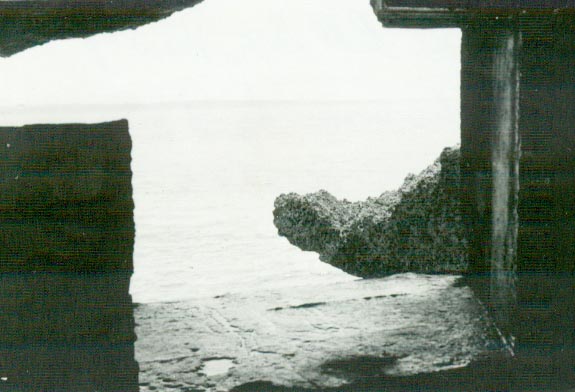 | Above, Bob Monk, Ret'd SgtMaj, ASA & The Late MSgt R. C. Lee, 1st Sgt, TRRS & Comm Cen Ch, Sobe - Two of the finest ever to serve the ASA mission, in front of the Water Level Jap Pill Box, WWII "Yellow Beach" landing site. (Pill box photoed by just about ever ASA troop ever at Sobe/Torii). Below, view from inside the pill box. Many years later, I showed this photo to a neighbor who, as a U S Marine Infantry troop, landed on this very beach. He shuddered as he viewed the photo, commented - I'm glad they did but I wonder how they missed me. I understood how he felt, even seven years later, (date of the photo), w/the implacement long empty, it had an forboding feel about it. The father of one of my Trick three troops, died on this WWII Invasion beach. He told no one, until about a week before the young ASAers DEROS date!!! |