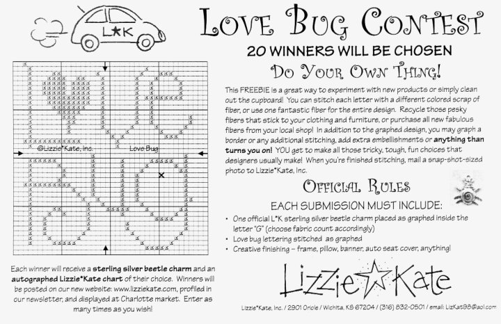 A huge thank you to Linda Ebright of Lizzie*Kate for allowing me to post her designs as well as use her background and graphics. All items on this page are Copyright � Lizzie*Kate. Please support this generous designer.