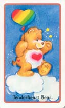 This is the Tenderheart Bear. It always help people to reach out to one another. It says, "Love is a warm, fuzzy feeling, so go ahead and share it."