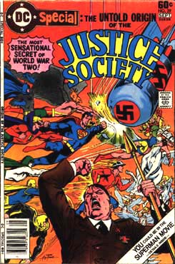 | to DC Special # 29, I almost wet myself! Matter of fact, I still clearly remember finding this one on the stands, and begging my father for the 60 cents to buy it. I'd never seen Adams do the JSA, matter of fact, I'm not sure he has since... But it wasn't just the cover. The story inside dealt with the origins of the team during the early days of World War II. This also touched a nerve inside me, since I was raised | |||||||||||||||||||||||||||||||||||||||||||||||||||||||||||||||||
