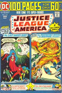 | have to be published 4 times a year. What it came down to, however, was not really money, but history. Those hundred pages would often feature classics not seen in years, and when I say classics, I mean not only stories and characters, but artists and writers. In one book, you may get Jack Burnleys gorgeously illustrated "Starman", Bernard Baileys fearsome "Spectre", Jerry Robinsons humorous Adventures of Alfred series....all for 60 cents (or 50, of course, as the 100 pagers were originally priced). The hundred pagers new stories were usually just as good as the old stuff, for instance, "JLA" # 113 gave us the return of The Sandmans sidekick Sandy in "Creature in the Velvet Cage". This was also the ONLY one part JLA/JSA team-up. (This story played a major part in Sandys eventual return as Sand in the current "JSA" book). "Detective Comics" # 423 also managed to snag master artist Alex Toth for a new Batman story even, although one suspects Toths working on Batman was contingent upon writer Denny O'Neil somehow adding bi-planes into the story.. and there were! And the success of the 100 pagers didn't slip by Marvel Comics, so Stan Lee decided to give it a try. They already had 'giants', so "King Size Giants" were prepared, the first one a Spider Man special, pitting the webhead against Dracula! However, the idea was dropped for some reason, and Marvel simply added a few more pages onto their regular 'giants'. The Spidey/Dracula story did find it way into print a while after. | |||||||||||||||||||||||||||||||||||||||||||||||||||||||||||||||||