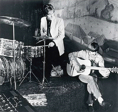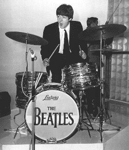 Right band, wrong drummers...: John at Abbey Road, 1965; Paul on the "AHDN" set, 1964; (below): John and Ringo filming "Hello Goodbye" at the Saville Theater, 1967. |