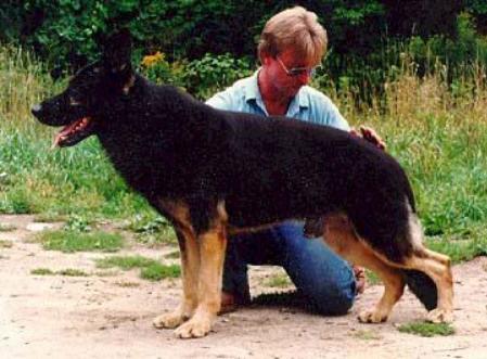 Wilder Pferd vom Kiebitzmoor Sch3 HD-A Beglaubigter PD-K9. Sein Vater und Damm: Rimo vom Tannenberg DDR SCHH3 FH HDA (Sohn) (Ziehen vom Rolandsteich SchH2 FH An.) Damm Cindy vom Kiebitzmoor SCHH2 DDR HDA. Cindy die Tochter von Trux vom Haus Himpel PSHI DDR und große großartige Tochter von Bernd vom Lierberg SCHH3 FH. Wilder Pferd war ein Arbeitspatrouillehund, Ein sehr harter Mann, der erforderlich ist, ein Maul zu jeder Zeit zu tragen.
