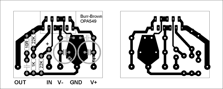 Burr-Brown OPA549 Parts Placement Guide and PCB Foil Pattern
