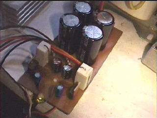 The Power Supply used for the amp. I used an 18V-0-18V/10A transformer with 10,000uf per rail capacitors. It also has a regulated +/-15V in the same pcb used for the bridging adapter and the low pass filter circuit.
