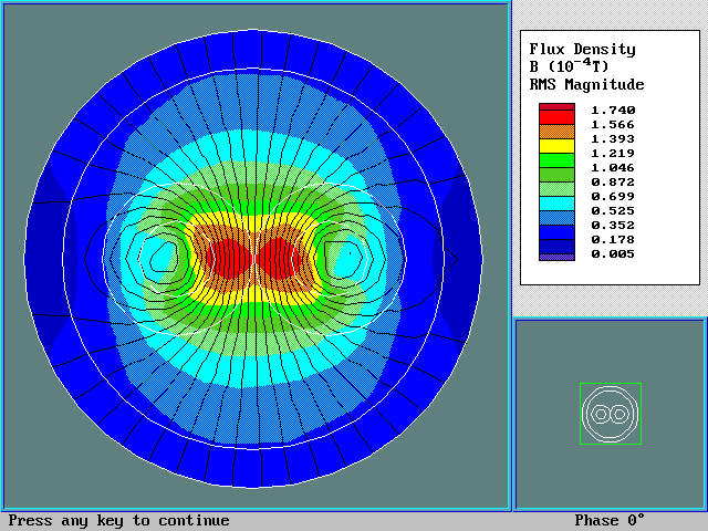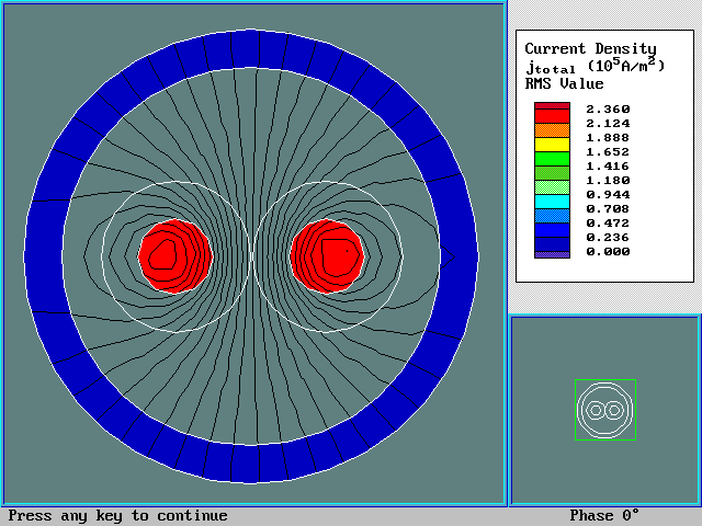 Note that there is no sign of the skin effect for this size wire at 60 Hz. Current density is even throughout the wire, within approx. 5%.