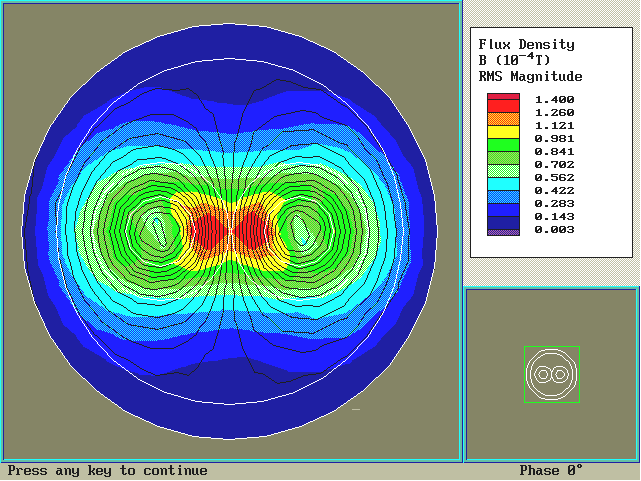 Note the magnetic field does not readily penetrate the shield, and the maximum magnetic field density is between the two wires. There is also a significant amount of magnetic field in the crease between the two wires insulation, which if a conductor (such as a shield) were present, would tend to be shorted out somewhat.