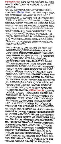 El Rey Jaime II en la Carta Magna a la Muy Noble y Muy Leal Ciudad de Orihuela está interpretada por autorizados linguistas que nos dicen que dijo esto y lo otro, en plan telegrama....pero ahí va una lectura-copia del original pero con tipo de letra personal.