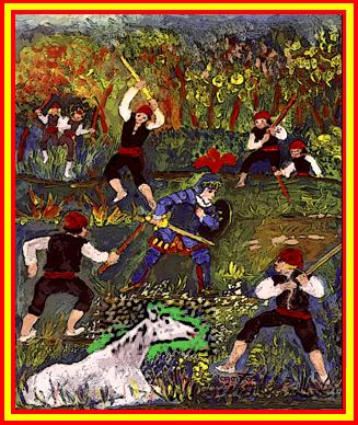 Y, sin hacer más discursos, echó mano a su espada y arremetió a los gallegos.