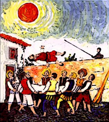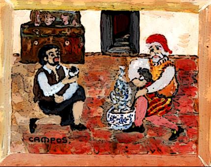 Sancho Panza, que también tuvo a milagro la mejoría de su amo, le rogó que le diese a él lo que quedaba en la olla que no era poca cantidad.